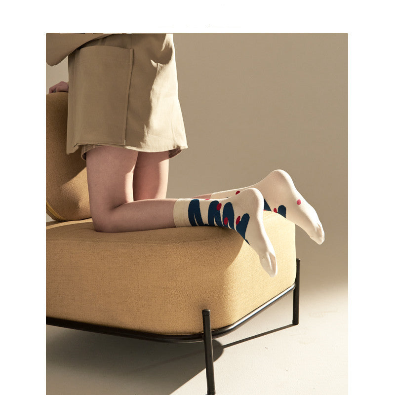 Socks Women's Tide Socks Ins Original Blue And White Curve Socks Letters Geometric Wild Socks Couple Socks Boneless Men's Socks