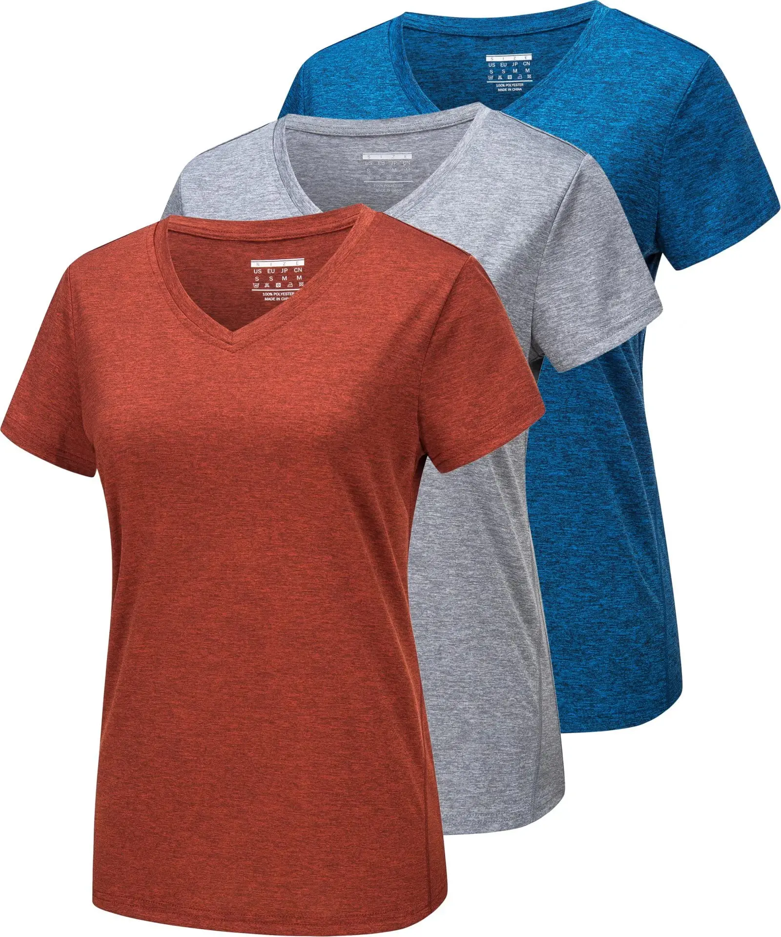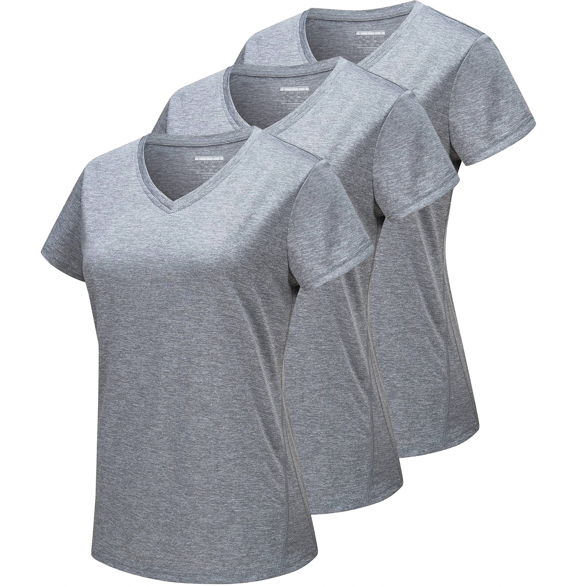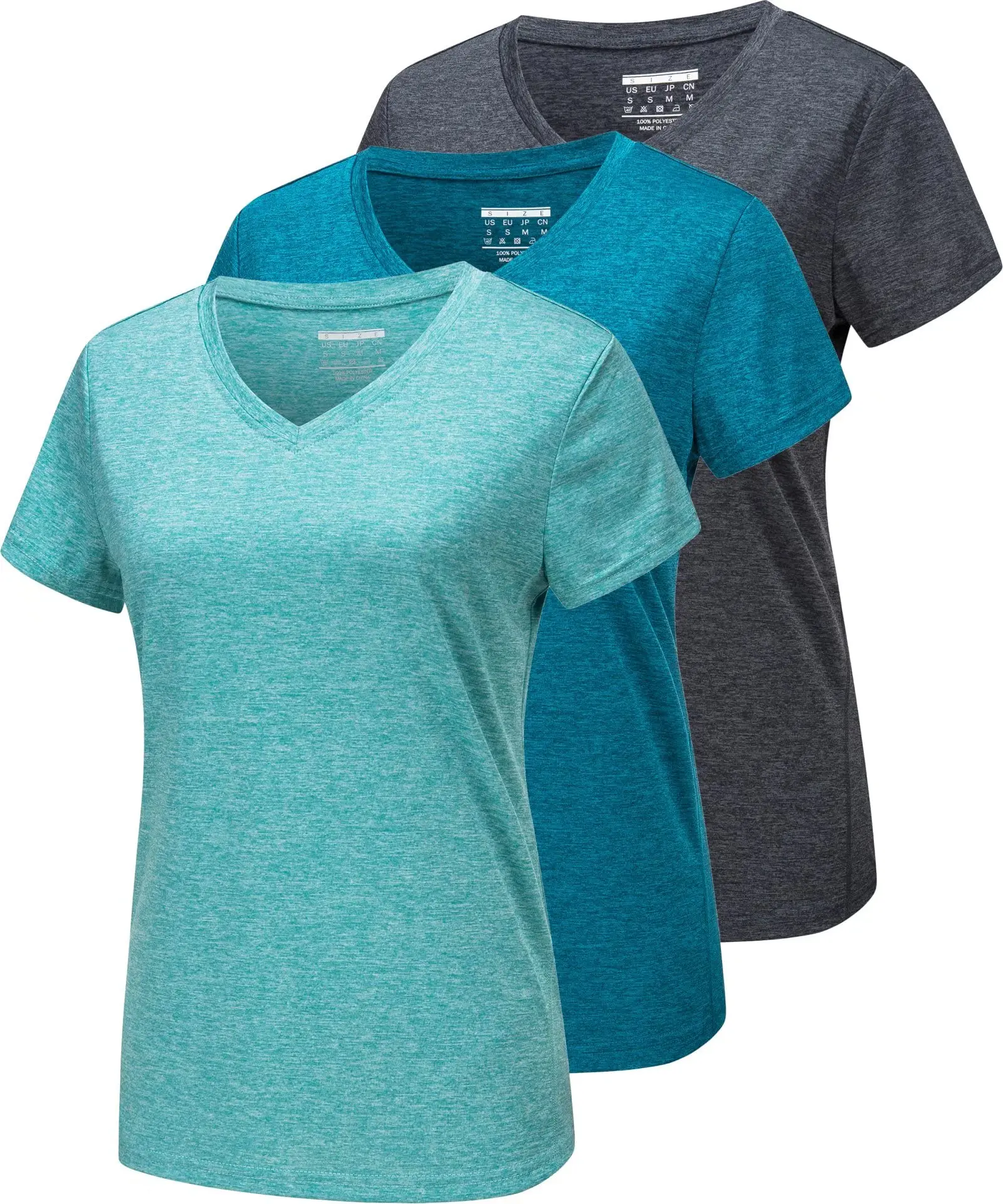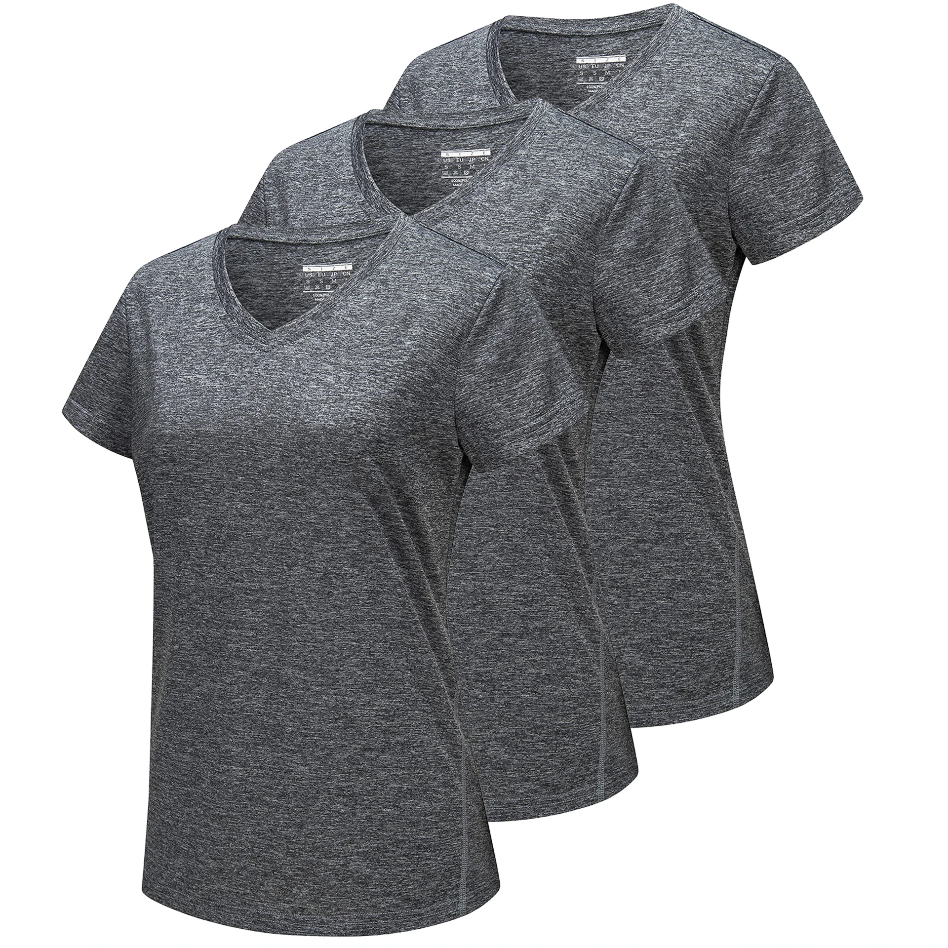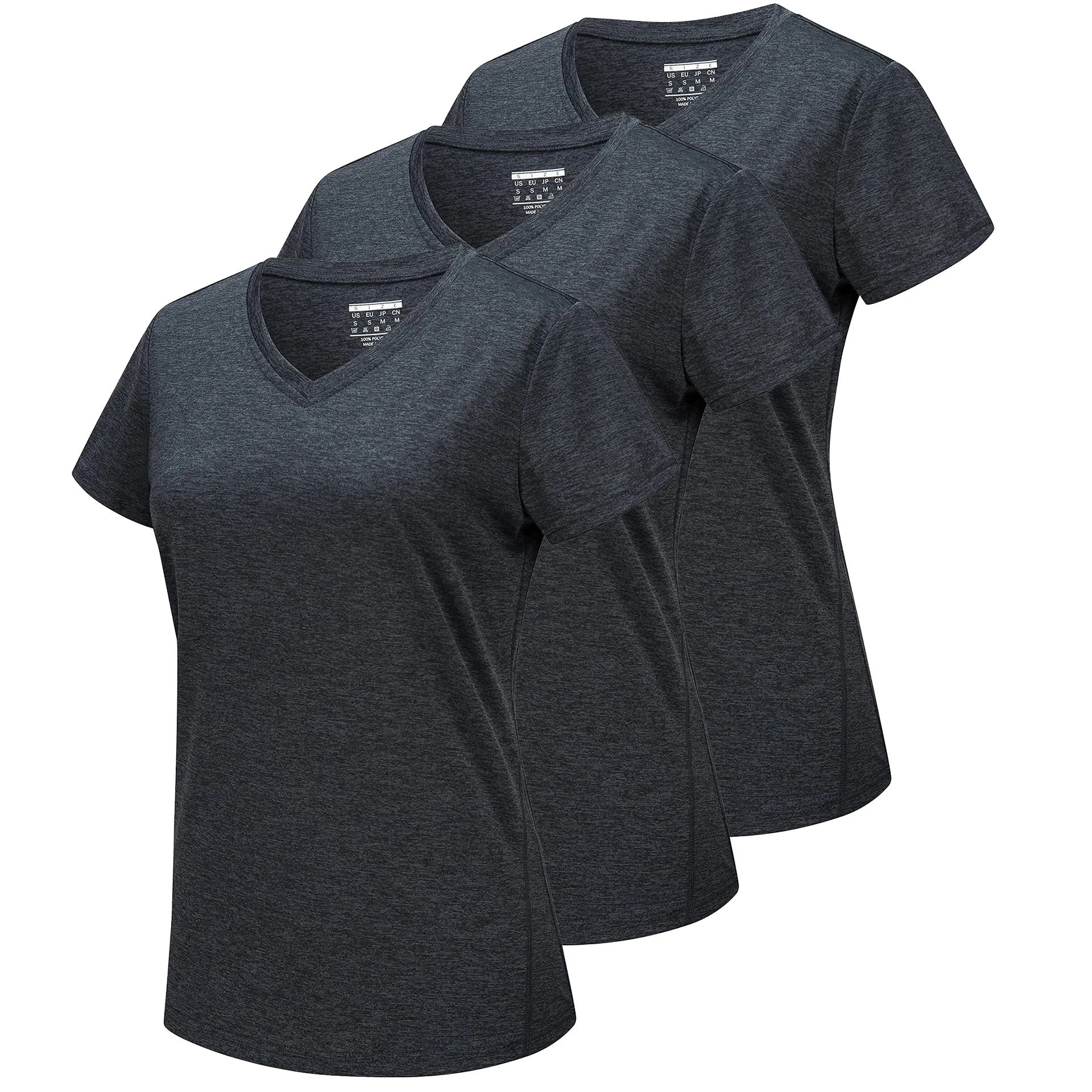 TACVASEN 3 Pieces Summer V Neck T-shirts Womens Casual Short Sleeve Shirts Packs 3 Lots Quick Dry Running Workout Gym Pulover