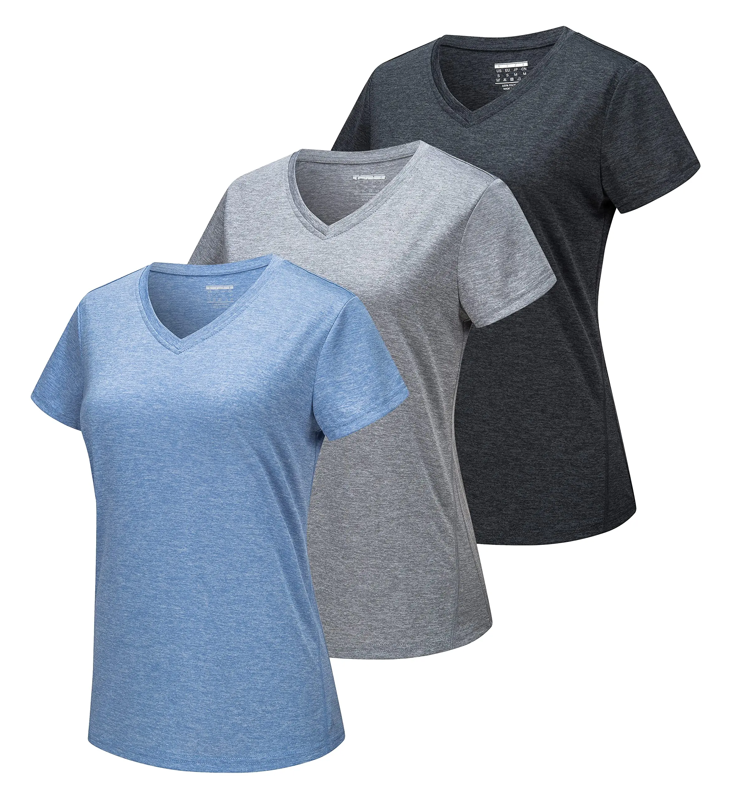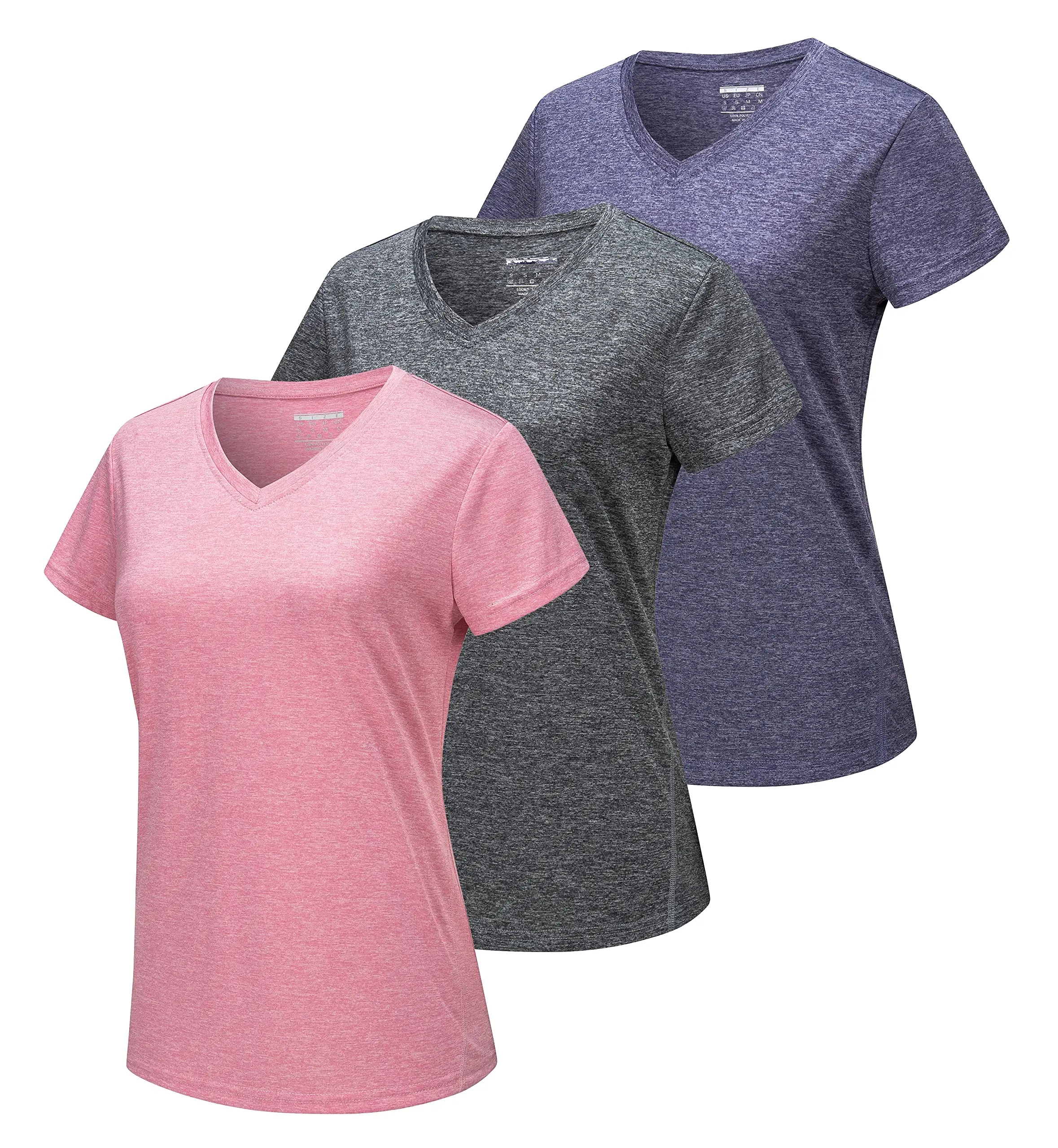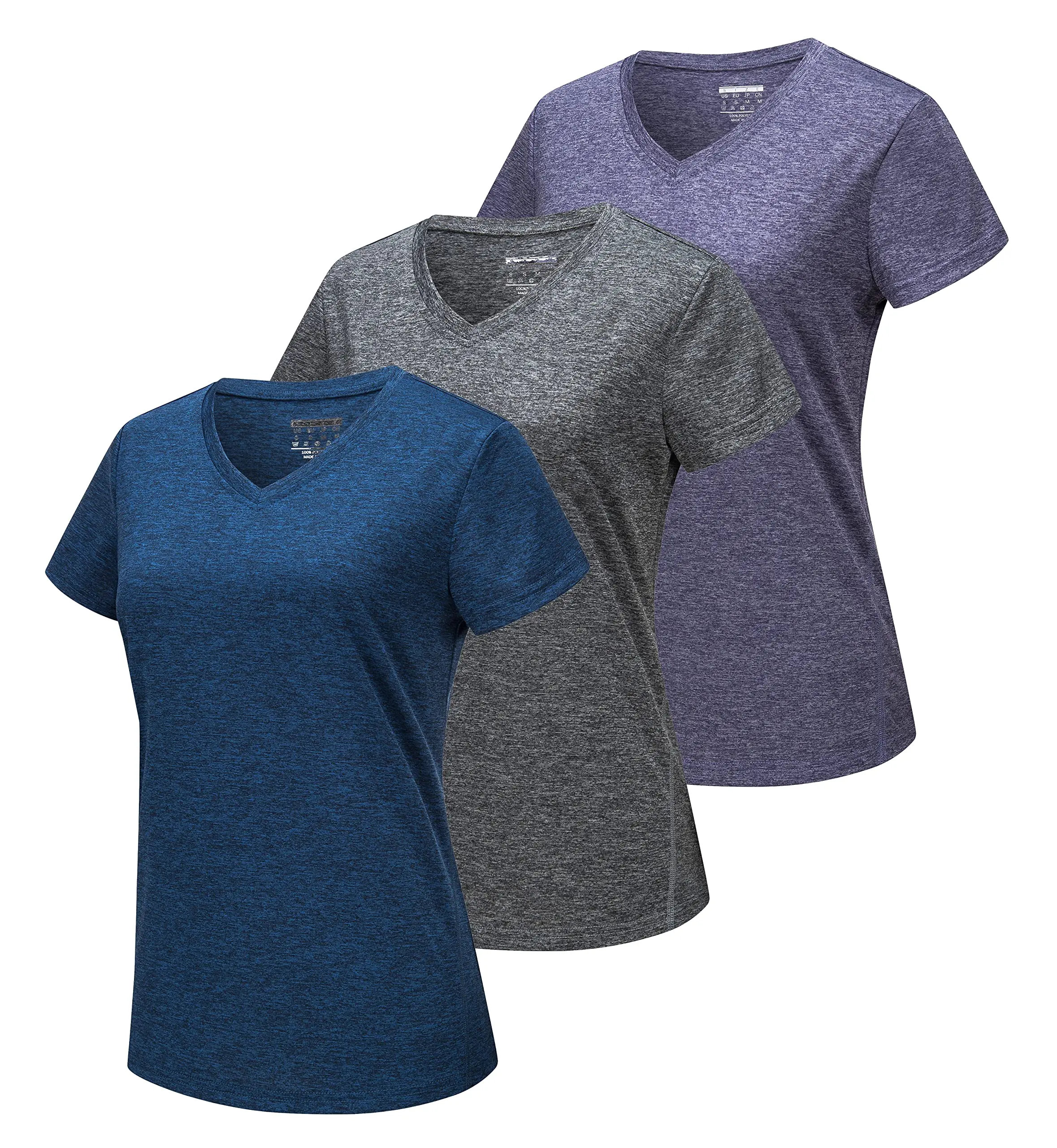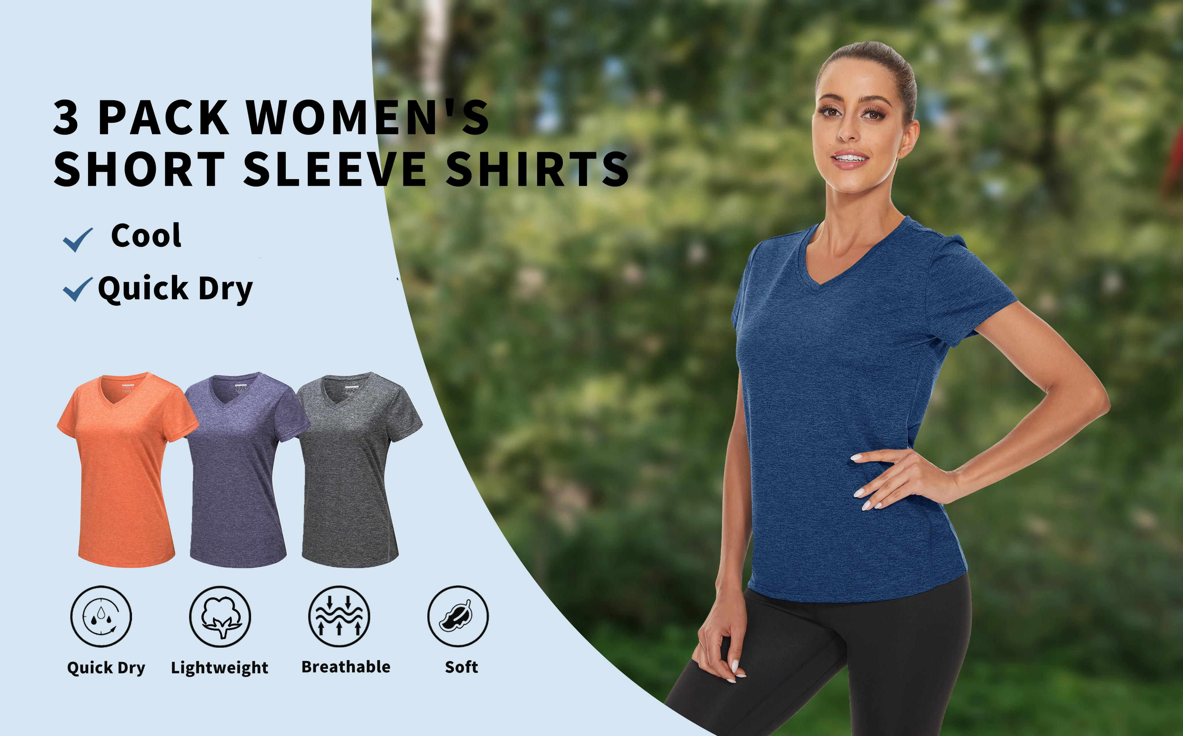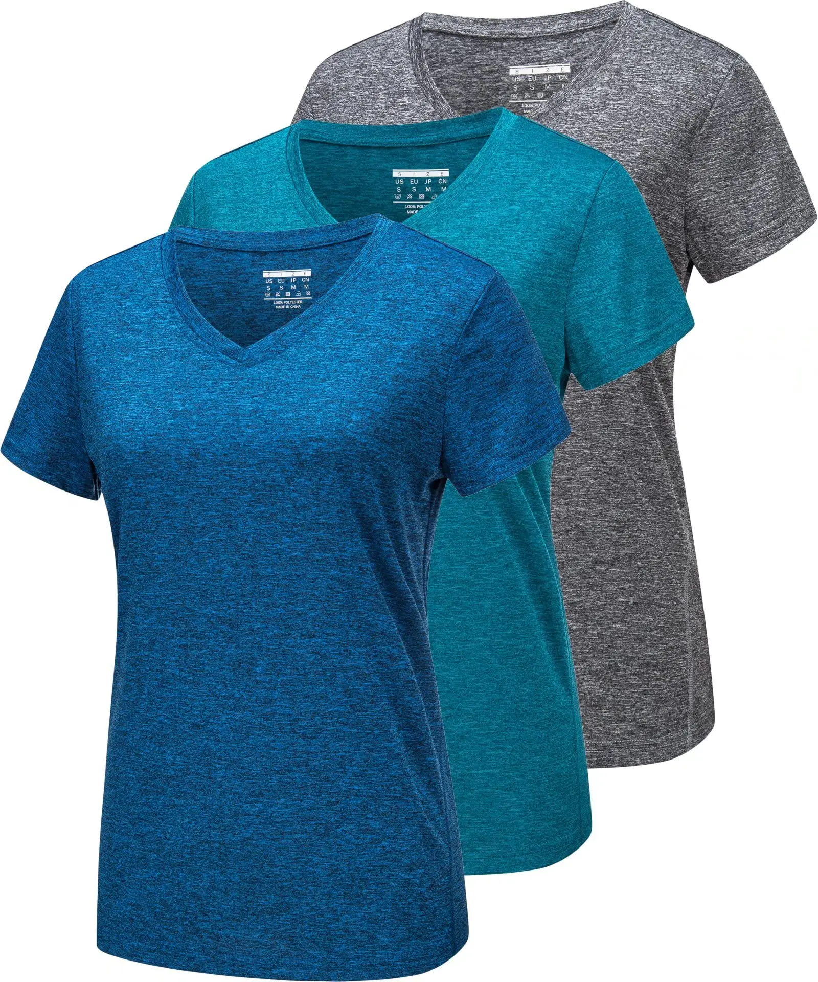 TACVASEN 3 Pieces Summer V Neck T-shirts Womens Casual Short Sleeve Shirts Packs 3 Lots Quick Dry Running Workout Gym Pulover